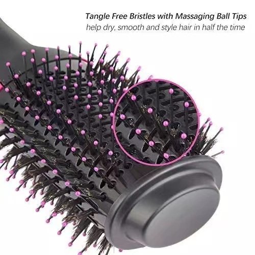Blow Dry with Gorgeous Result: The unique oval-shaped barrel features 360° airflow and nylon pin-like bristles designed to prevent tangles and improve volume and shine. Creates soft curls, as well as flips.