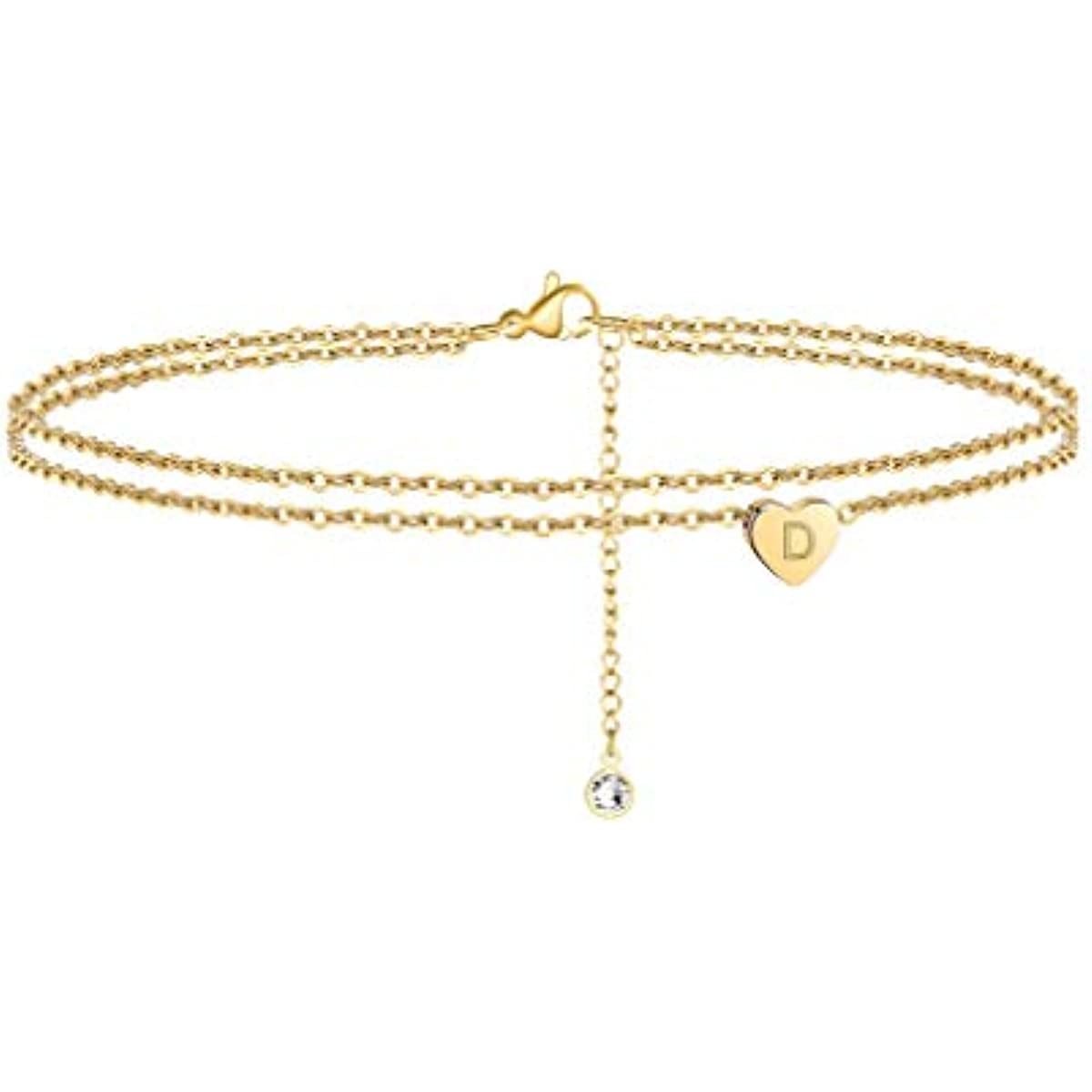 Home > Turandoss Heart Initial Ankle Bracelets for Women; 14K Gold Filled Handmade Dainty Layered Anklet Letter Initial Heart Ankle Bracelets for Women Beach