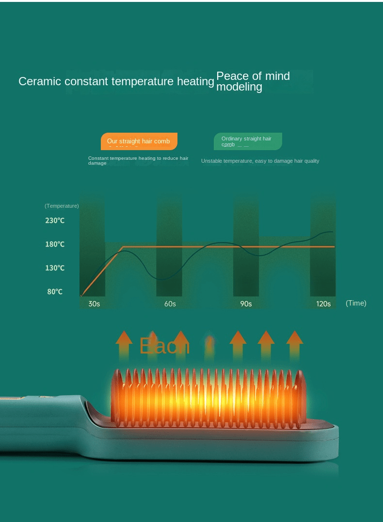 Dual Voltage Compatibility: Whether you're at home or traveling internationally, the hair straightener comb dual voltage systems. This makes it a versatile styling tool that can be used anywhere around the world without the need for a voltage converter.